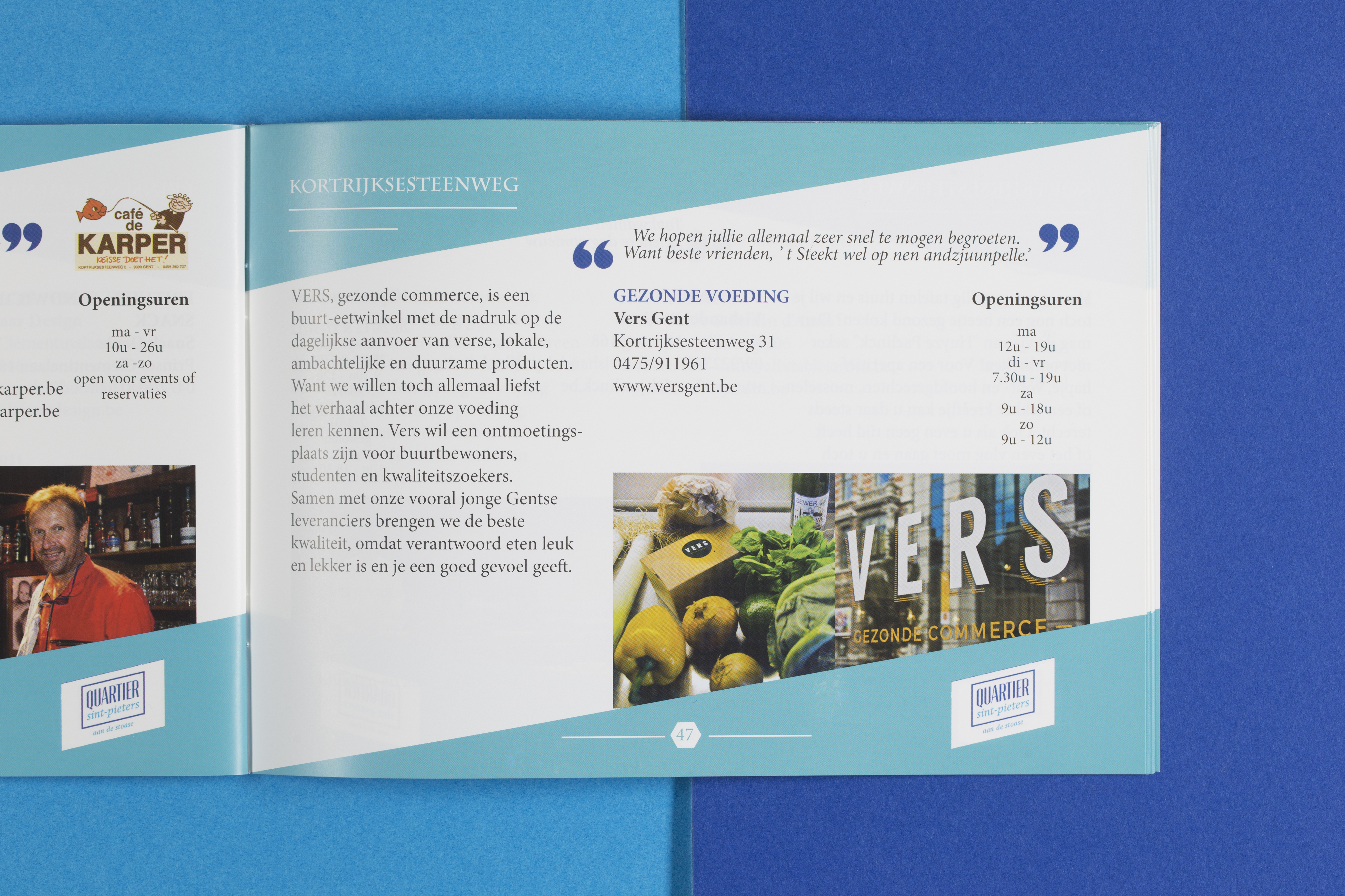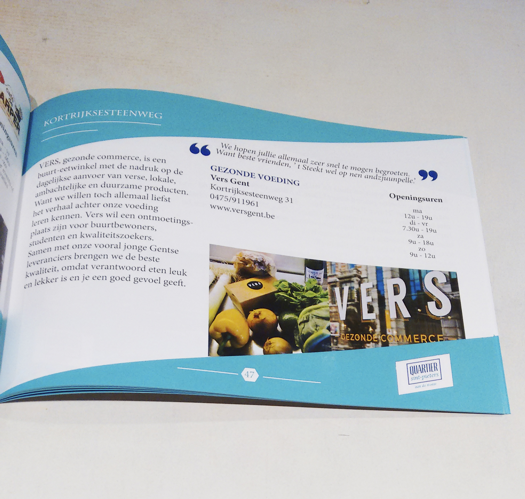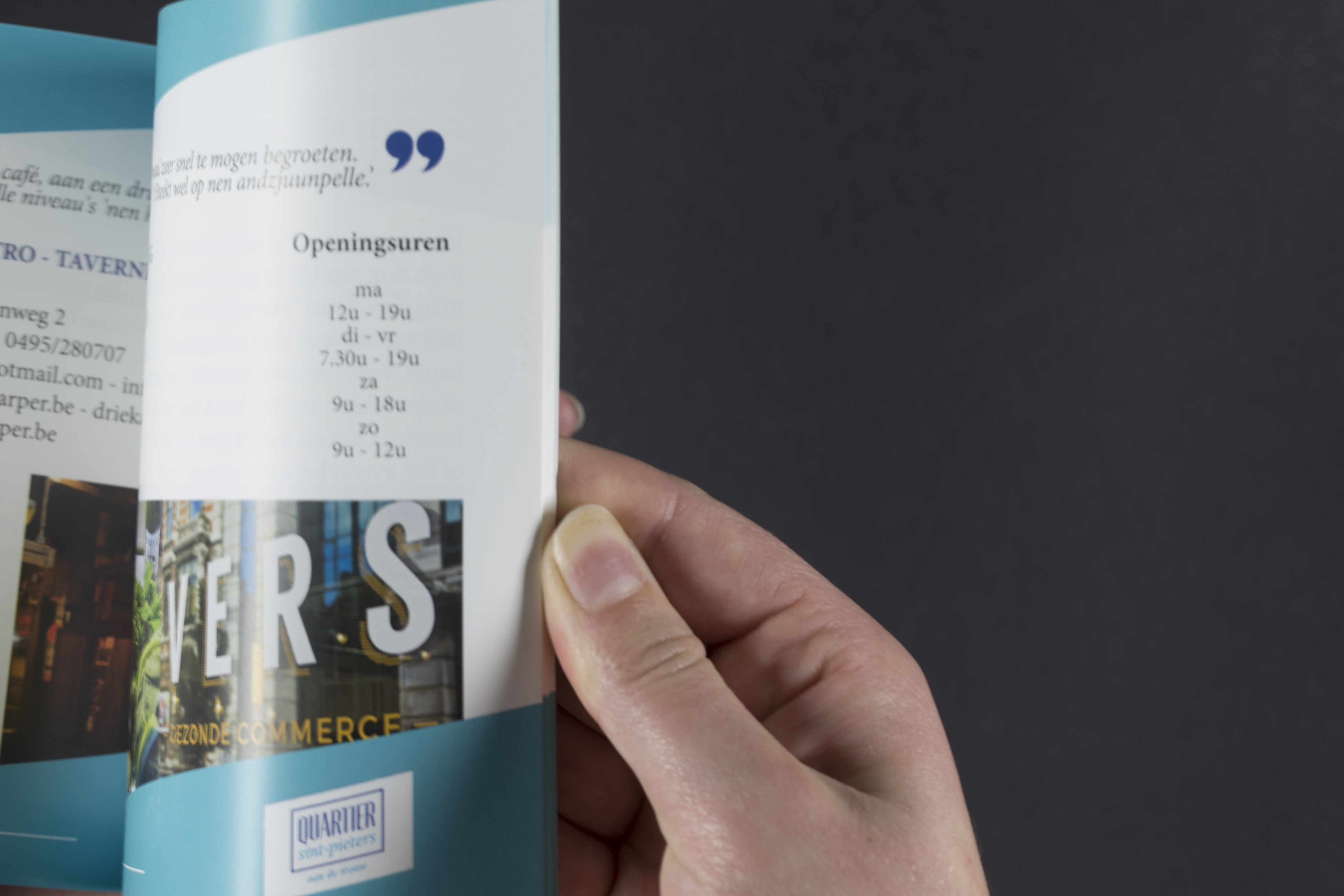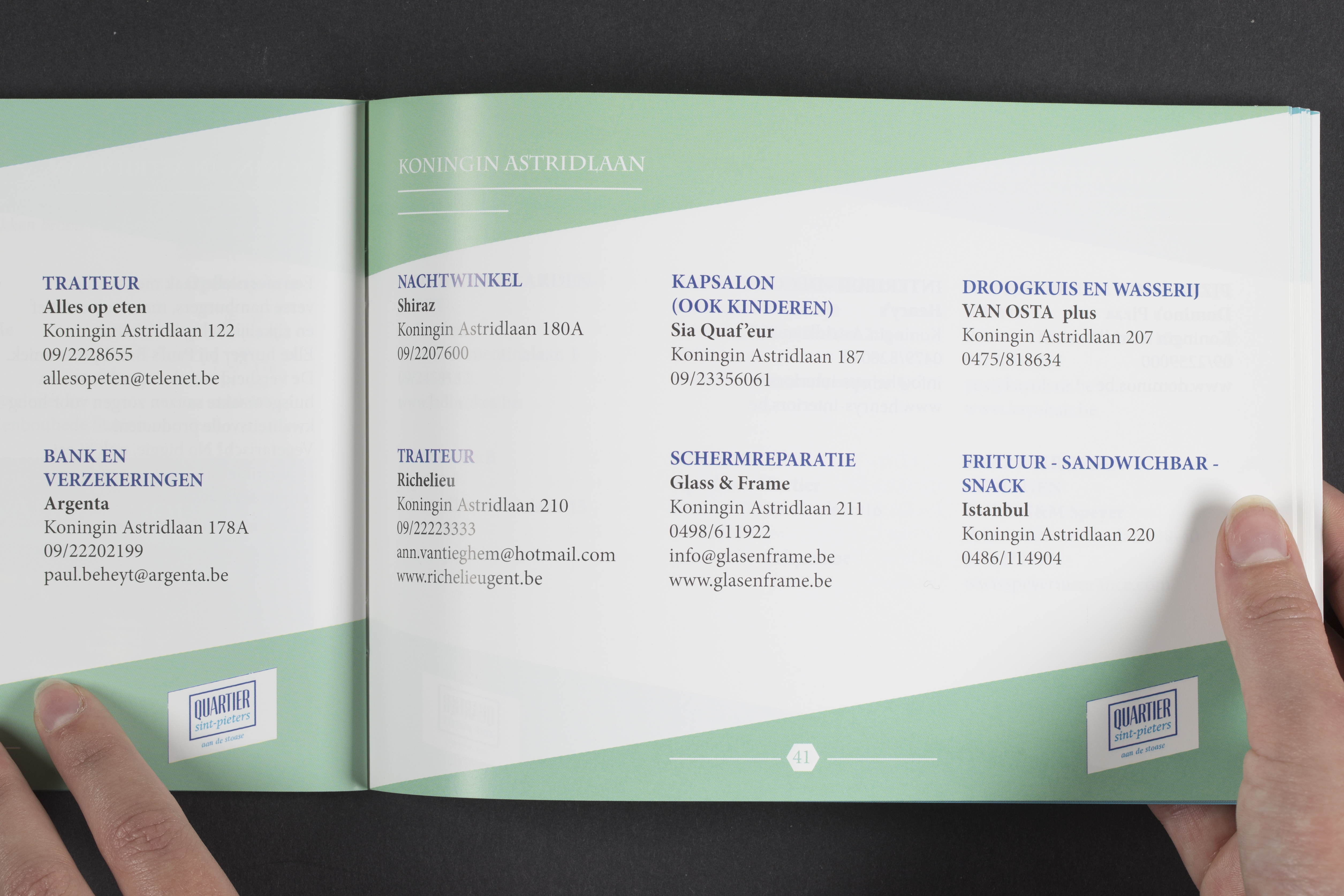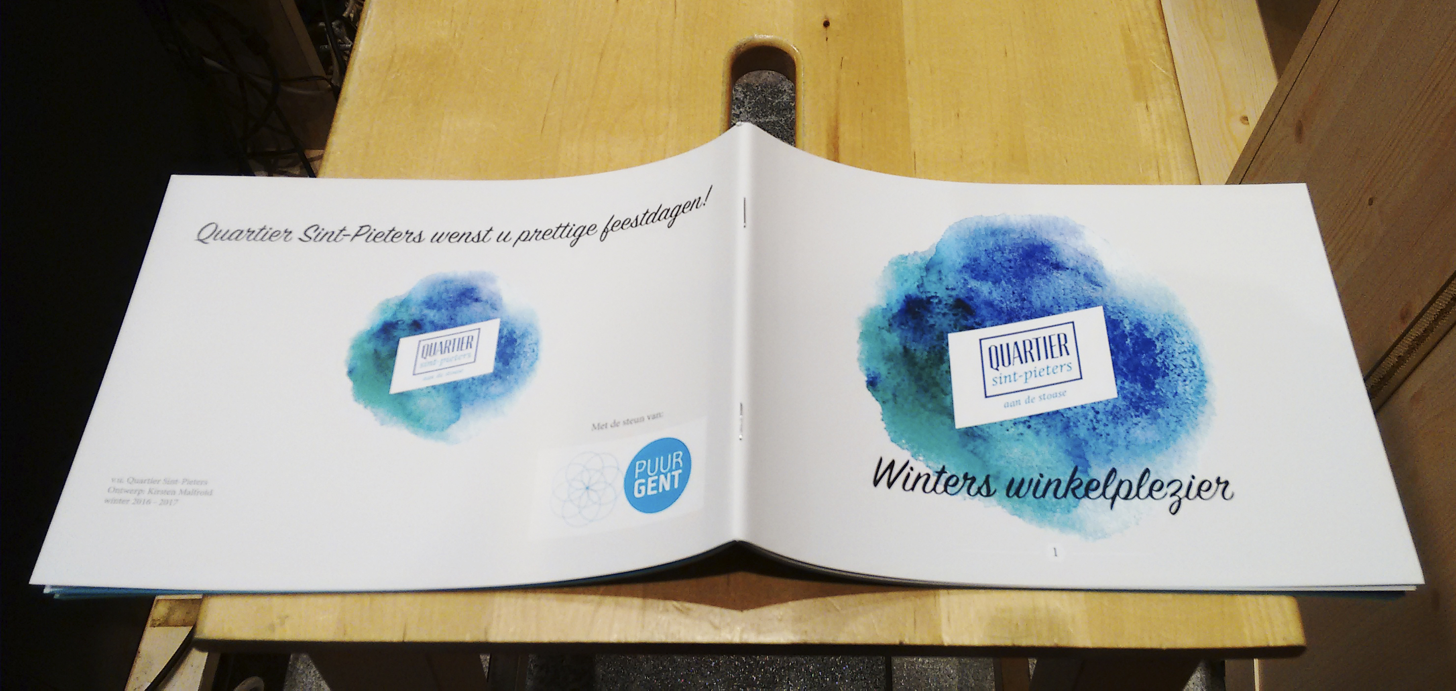 Met de koopjesperiode van deze winter in aantocht nam Quartier Sint-Pieters (met de steun van Puur Gent) het initiatief om zich meer op de kaart te zetten als sfeergebied en de klant te informeren over het ruime aanbod in de wijk. Voor de vormgeving van een overzichtsbrochure en immoborden voor de gevels kwamen ze bij mij aankloppen. Bemachtig één van de 20.000 exemplaren van de brochure in de deelnemende zaken, spot deze a.d.h.v. het gevelbord en snuister rustig rond voor uw eindejaarsaankopen. Veel winters winkelplezier!