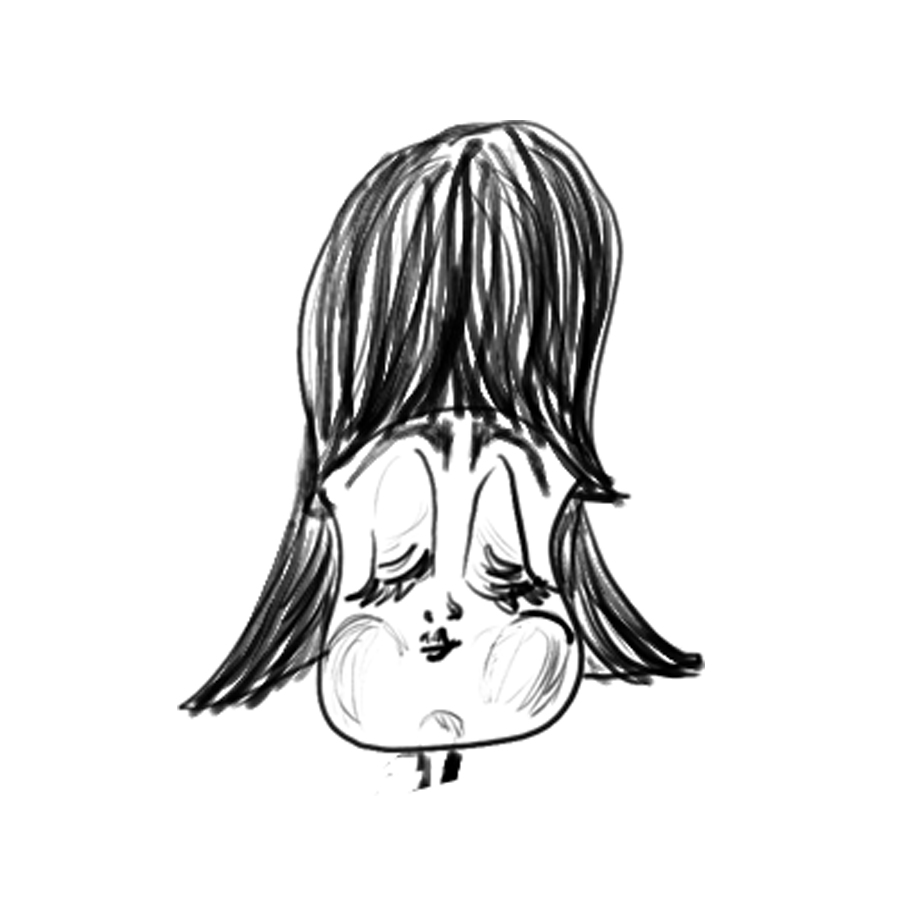 Bovenop die vlek kwam een extra laag die ermee interageerde: mijn hoofdpersonage. Uit mijn onderzoek kwam naar voor dat depressie, zelfmoordpogingen en automutilatie vaker voorkomen bij meisjes dan bij jongens. Dus besloot ik als hoofdpersonage een meisje van 15 jaar te creëren. Het hoofd daarvan kreeg vorm tijdens een workshop character drawing (met de Wacom Cintiq als heerlijk speelgoed).