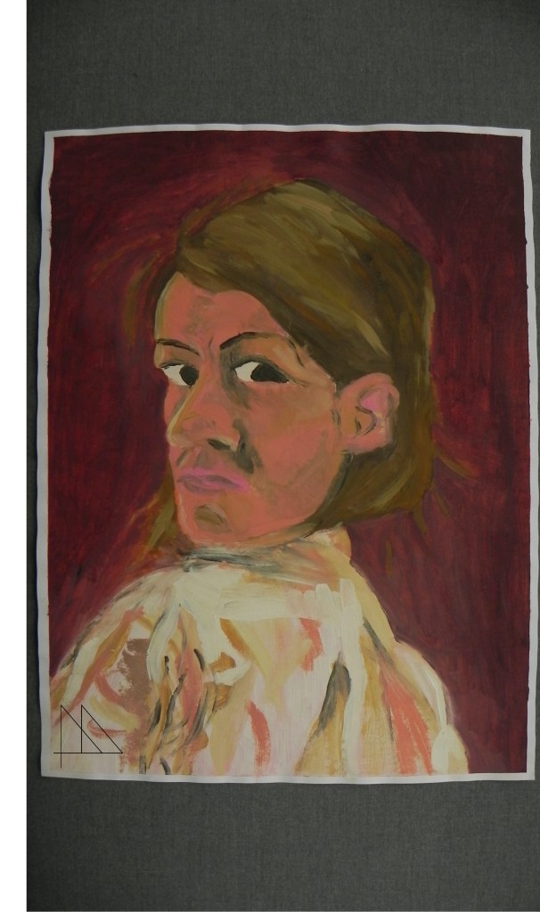 Zelfportretten zijn het moeilijkst en het makkelijkst om te maken. Het moeilijkst, want je moet steeds wisselen tussen je papier en de spiegel en daarbij exact dezelfde houding proberen aanhouden. Het makkelijkst, want je hebt een model dat altijd voorhanden is.